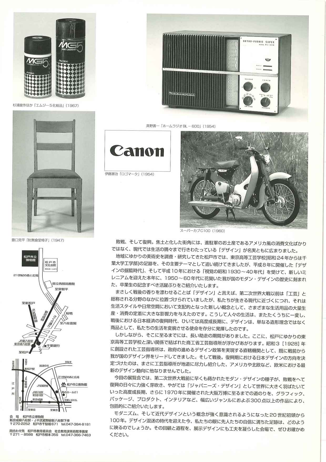 東京高等工芸学校卒業生の戦後の活動を紹介。インテリア、プロダクト(自動車、バイク、電化製品、カメラ)、広告(ネオンサイン、ポスター、雑誌)、パッケージなどを紹介。